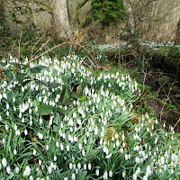 Googling "snowdrops", I discovered that they are not in fact native plants. They were introduced long ago - possibly during the era of Roman occupation but were certainly well-established by the sixteenth century. Interestingly, William Shakespeare never referred to snowdrops in his writings though he did remark upon daffodils in "The Winter's Tale": "When daffodils begin to peer, - With hey! The doxy over the dale, - Why, then comes in the sweet o' the year".